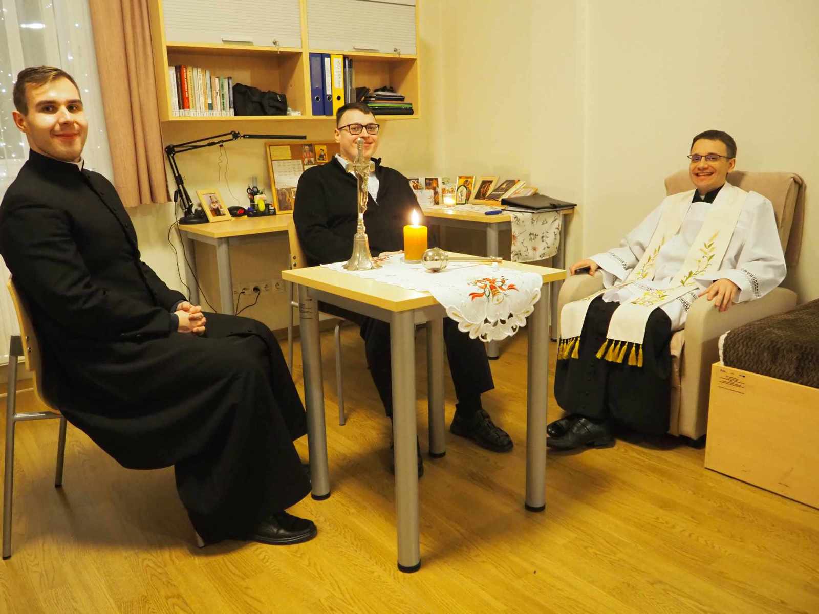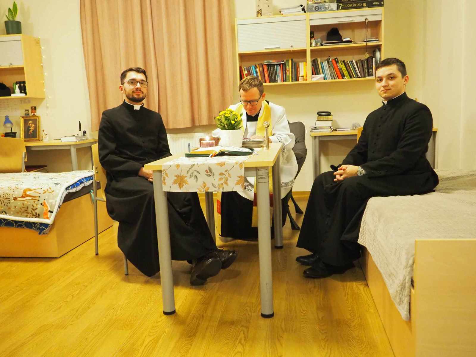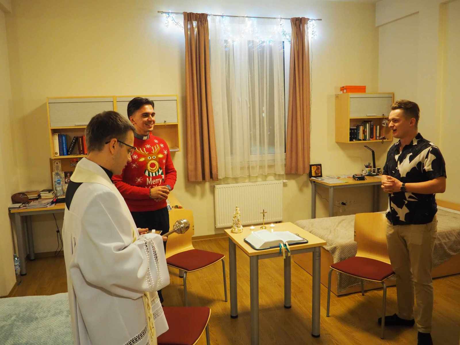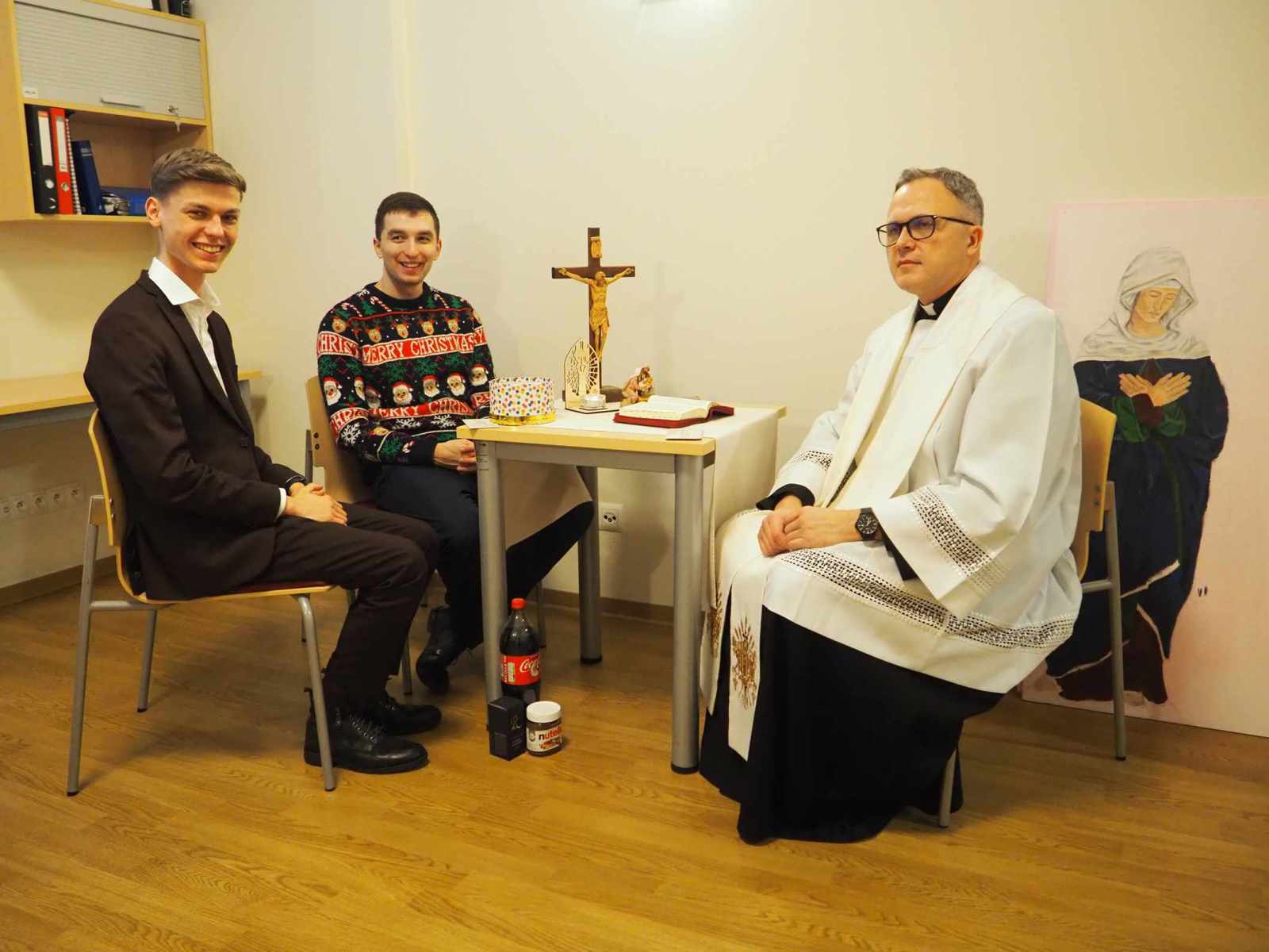 Kolęda to nie tylko błogosławieństwo pomieszczeń, ale przede wszystkim czas wspólnej modlitwy, w którym powierzamy nowy rok 2026 opiece Pana Boga i Matce Najświętszej. Wspólnie odmawiane modlitwy, czytanie fragmentu Ewangelii i pokropienie wodą święconą symbolizują prośbę o Boże błogosławieństwo dla każdego kleryka, jego formacji oraz przyszłej posługi kapłańskiej. Po zakończonej wizycie duszpasterskiej zgromadziliśmy się na wspólnym kolędowaniu.